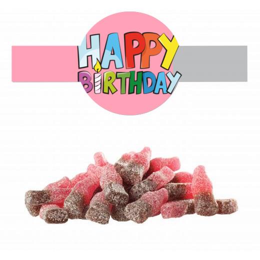 Die veganen saure Kirsch Cola Flaschen gibt es jetzt im Tiegel mit Banderole zum selbst gestalten oder auswählen.
