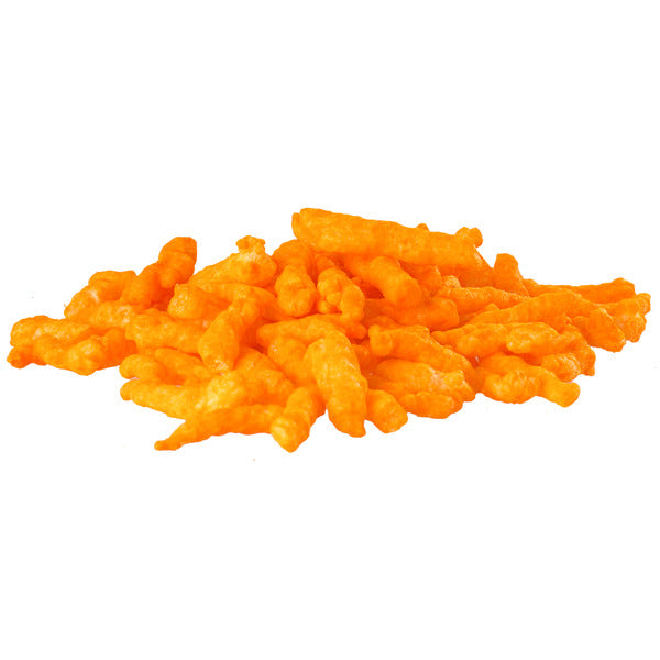 Entkeimtes gelbes Maismehl, Sojabohnen und/oder Mais und/oder Canolaöl, getrocknete Käse-Mischung (Molkenerzeugnis, Sonnenblumenöl, Halbweichkäse (2,5%), :pasteurisierte Milch, Käsekultur, Salzenzyme; Lactose, Modifizierte Stärke, Maltodextrin, Molkenproteinkonzentrat, Salz, Natriumphosphat, Natürliche Aromen, Zitronensäure, Farbstoff: E102, E110; Milchsäure.