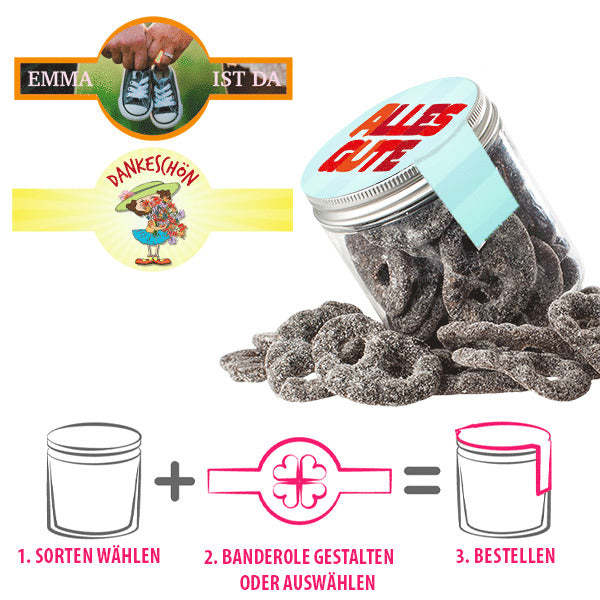 Lakritz-Brezel salzig im Tiegel (150g) mit Banderole (Kurzes MHD: 30.11.2025)